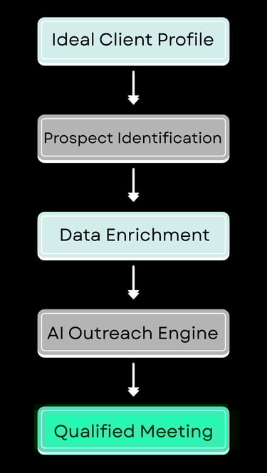 We combine targeted prospect sourcing, AI-driven outreach, and structured delivery so that qualified prospects respond and land directly in your calendar.